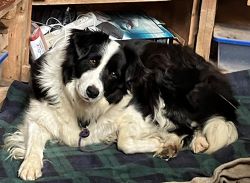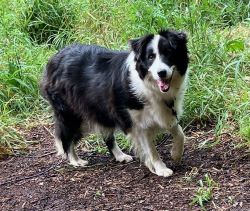 Taz is super intelligent with a good memory and pays very close attention to everything going on around him. There is a strong herding instinct coming out in his play. Taz absolutely loves meeting new people, young and old. He would do well with children if there was appropriate supervision and guidance. He has experienced being in a large variety of businesses and situations and is very attentive and happy to cooperate when approached by anyone who wants to meet him. He grew up with lots of car rides and travels, making him calm and a sleepy head when on the road. Taz came to us with a working knowledge of basic commands. He was quick to pick up heel and loose lead, but needs work when excited by deer, etc. He comes well when called, if you can whistle. Still needs proofing on that when off lead. Taz was well cared for and much loved in his only other home and his fosters love this big hearted boy, but can’t keep him any longer.