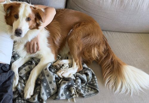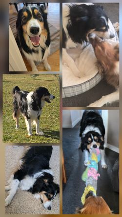 With a heavy heart we are looking for a new home for our incredibly loving and snuggly dog,Frankie. He is a gorgeous three-year-old purebred English Shepherd. He gets along great with our other male English Shepherd and does well on leash around other dogs, but he can be reactive with some dogs he does not know off leash.